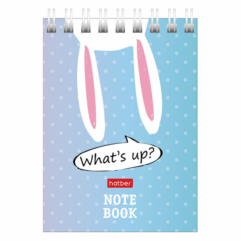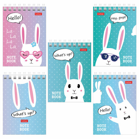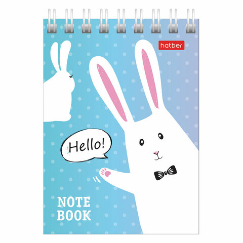 Блокнот МАЛЫЙ ФОРМАТ (75х108 мм) А7, 40 л., гребень, картон, клетка, HATBER, 'Прикольные зайцы', 40Б