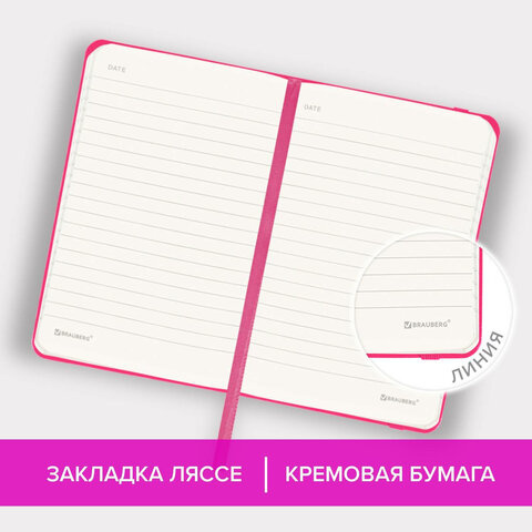 Блокнот МАЛЫЙ ФОРМАТ (93х142 мм) А6, BRAUBERG ULTRA, балакрон, 80 г/м2, 96 л., линия, розовый, 11305