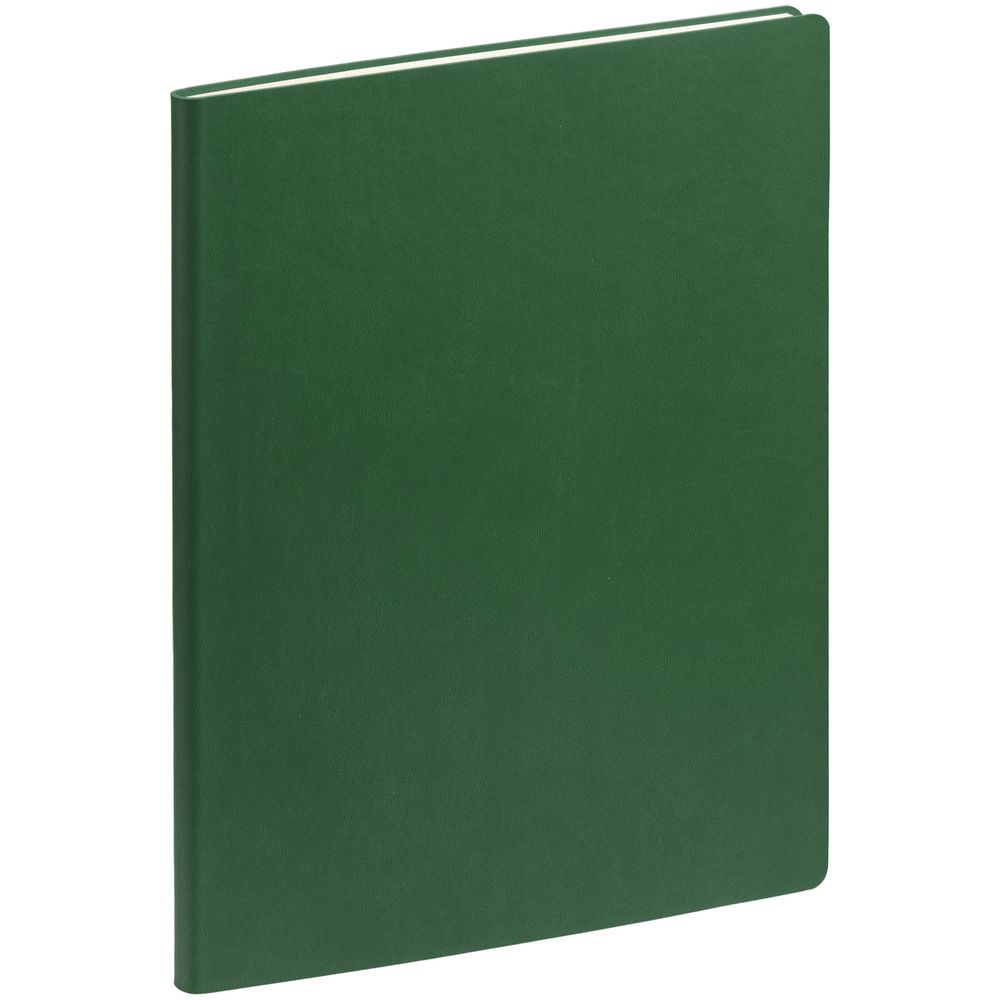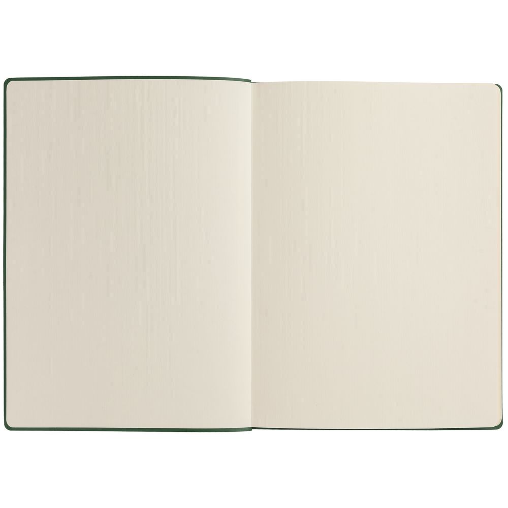 Блокнот в гибком переплете, материал обложки — Latte зеленый FF, дополнен ляссе в цвет обложки.144 страницы, без линовки;Бумага — тонированная, плотность 70 г/м;Форзац и нахзац — тонированные. Цвет: зеленый. Размер изделия: 20,5х27 см. Материал: искусственная кожа. Возможные виды нанесения: УФ-печать; Тиснение; Лазерная гравировка; Шелкография с трансфером; Шелкография (1 цвет);