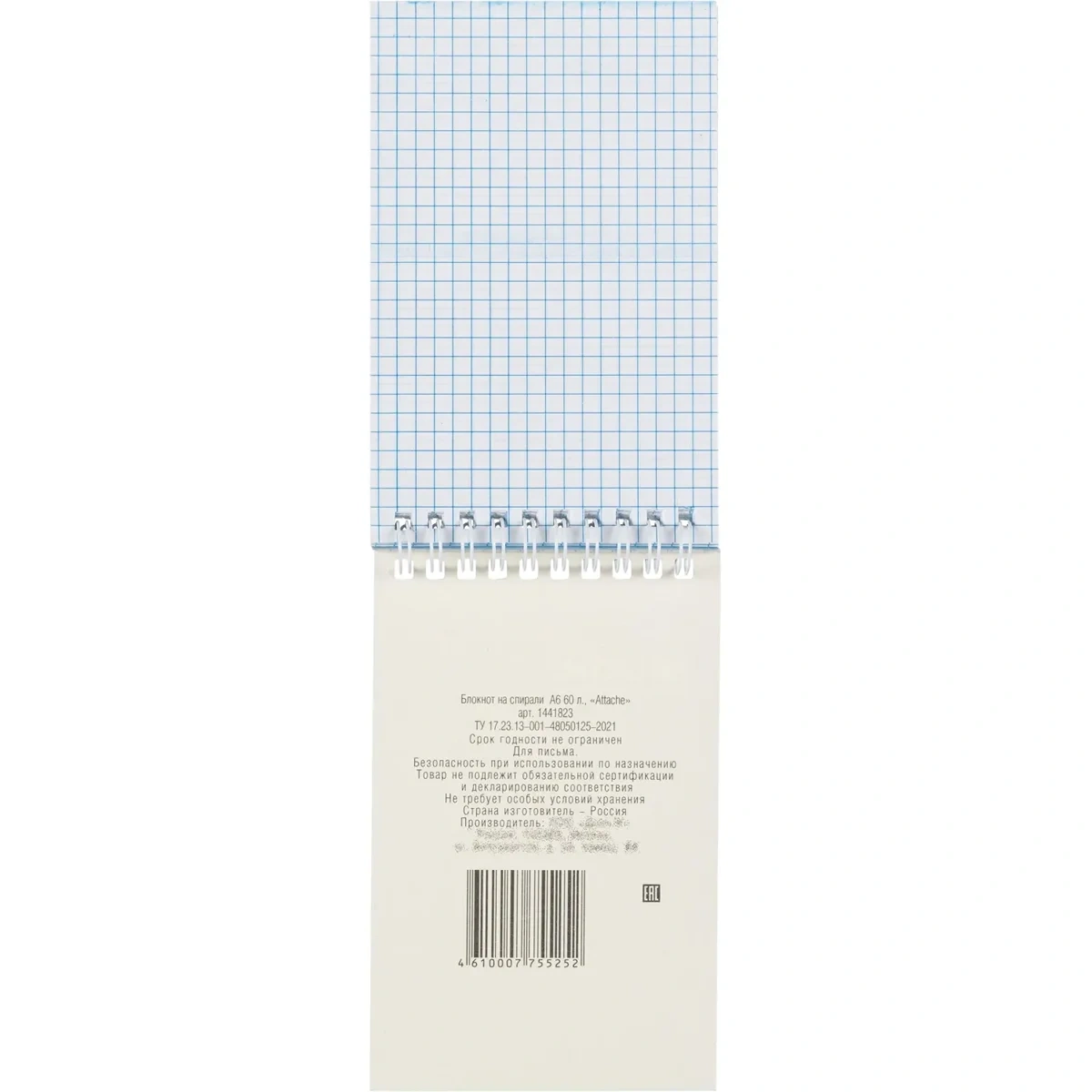 Блокнот Attache зеленый, А6, 60 листов, в клетку, на спирали