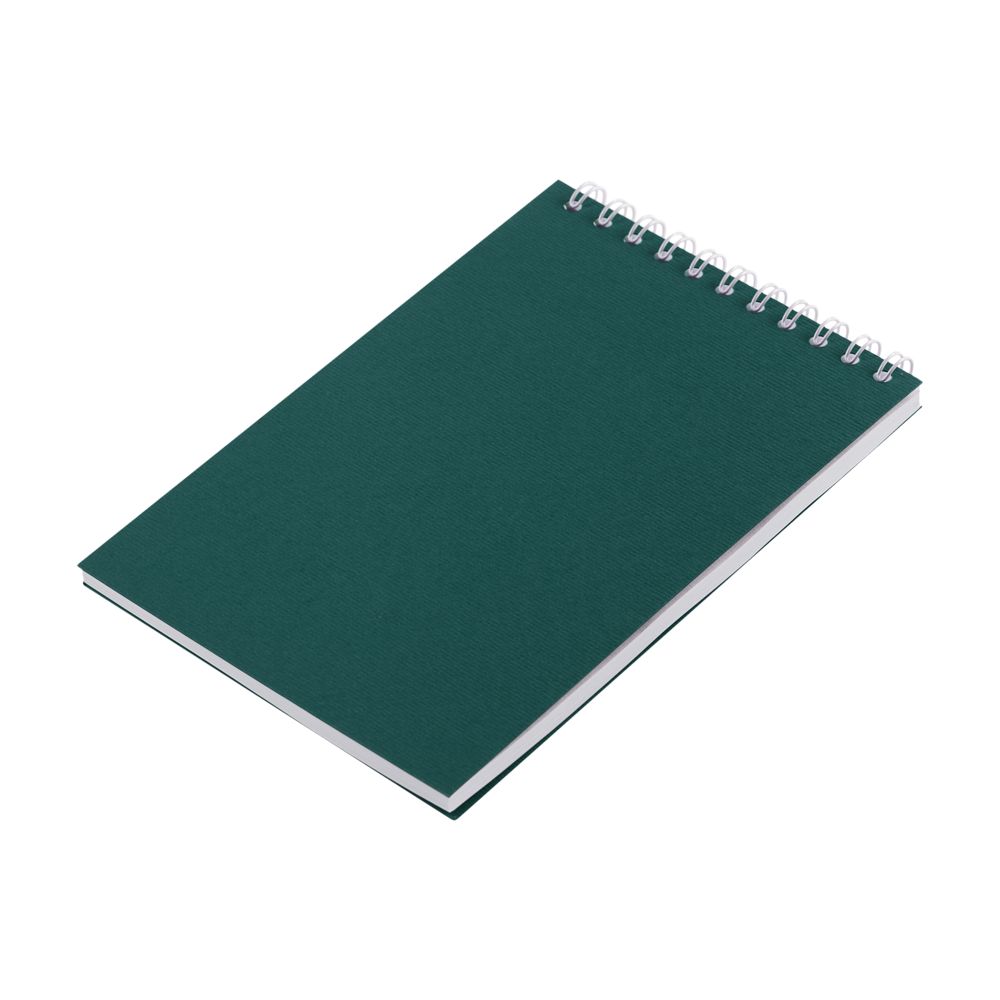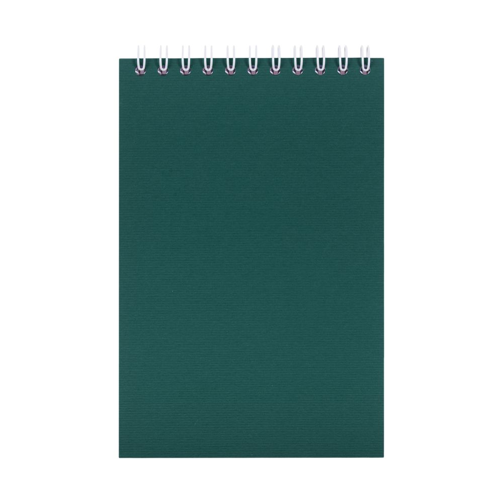 Обложка выполнена из картона Неттуно плотностью 280 г/м.Блок из белой бумаги плотностью 70 г/м, 50 листов в линейку. Цвет: зеленый. Размер изделия: 10х15 см. Материал: бумага. Возможные виды нанесения: Лазерная гравировка; Тиснение; Шелкография (1 цвет);