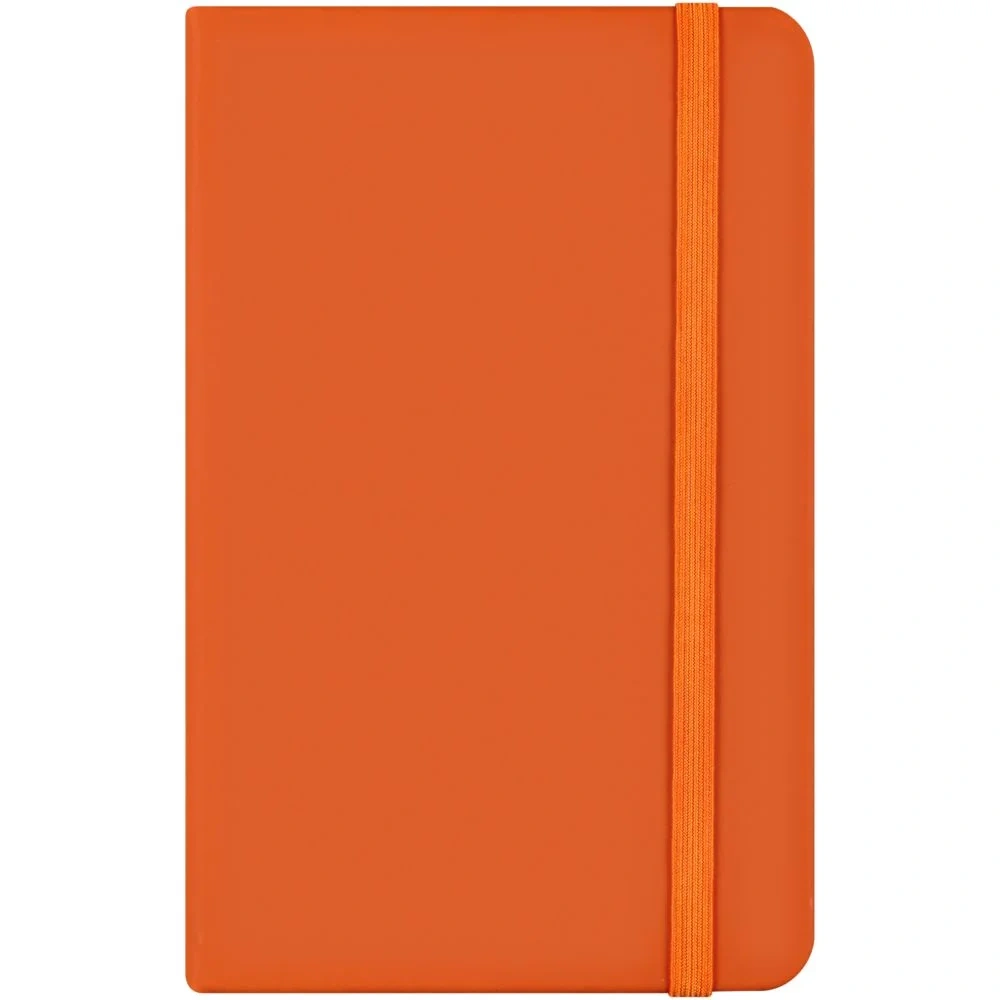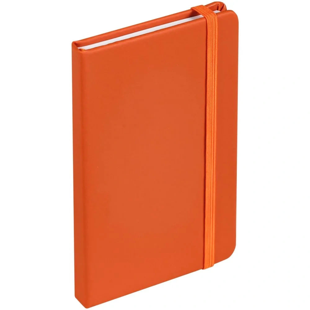 Блокнот с твердой обложкой.Резинка и ляссе в цвет обложки.Блок из 80 белых листов без линовки, плотность 70 г/м. Цвет: оранжевый. Размер изделия: 9x14 см. Материал: искусственная кожа. Возможные виды нанесения: Тиснение; Шелкография (1 цвет);