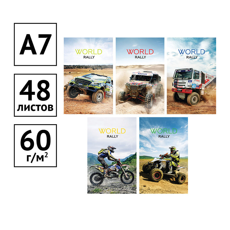 Блокнот Officespace Авто. World rally, А7, 48 листов, в клетку, на склейке