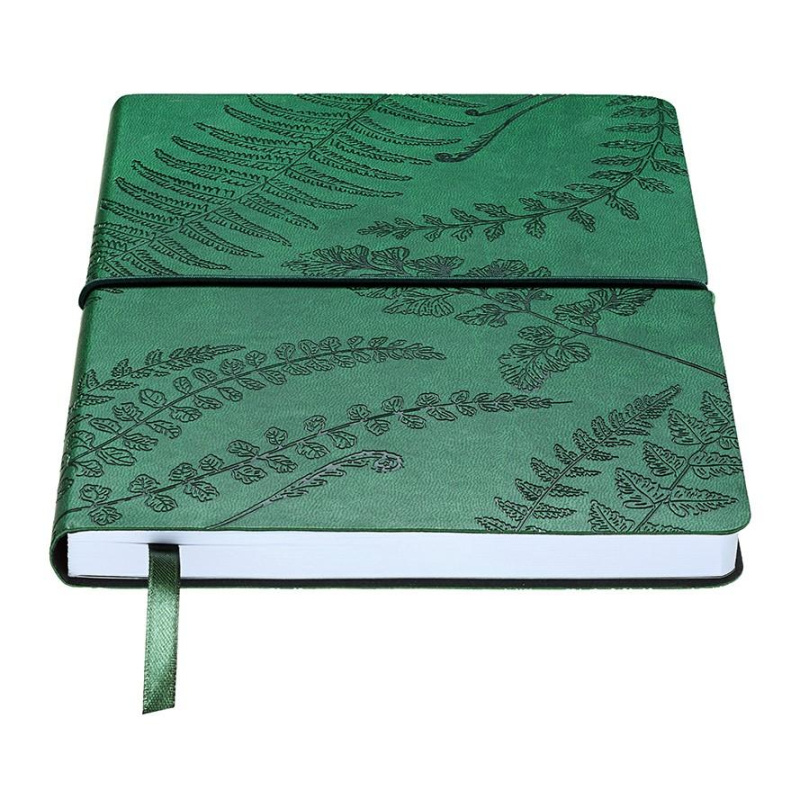 Блокнот Папоротники А5, 128л, клетка, обложка экокожа, с резинкой