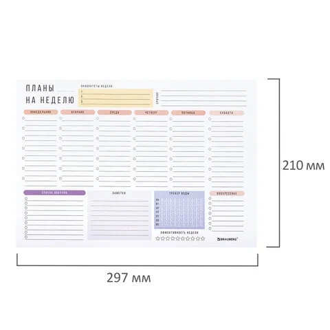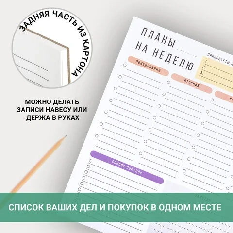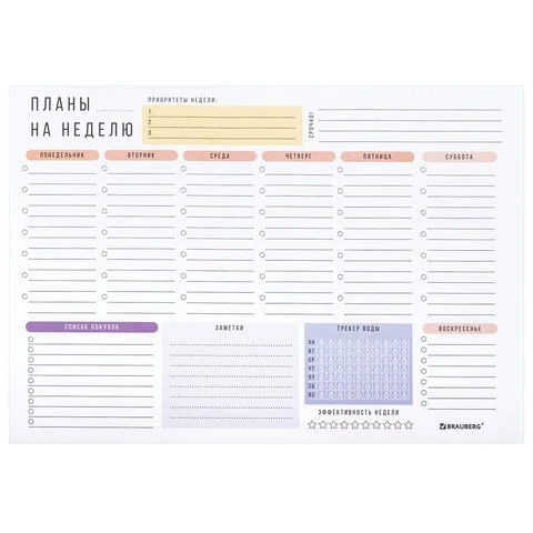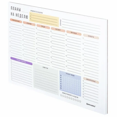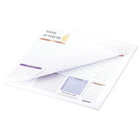 Блокнот-планер НА НЕДЕЛЮ недатированный отрывной с подложкой, 52 л., А4, 297х210 мм, BRAUBERG, 11421