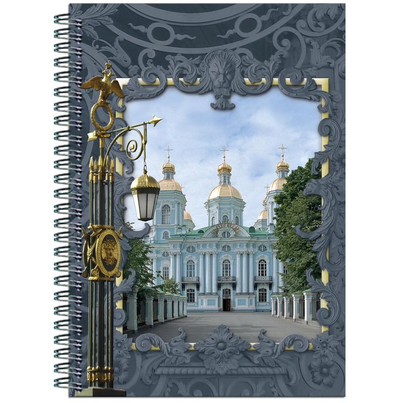Блокнот «Виды города» в обложке с изображением достопримечательностей Санкт-Петербурга. Жесткая подложка, выполненная из мелованного картона, обеспечивает удобство при письме. Внутренний блок, скрепленный по левому краю крупной металлической спиралью, состоит из 60 листов. Плотная бумага с разлиновкой в клетку не продавливается шариковыми и гелиевыми ручками. Блокнот имеет формат А6 (101x145 мм).Товар поставляется в нескольких вариантах цвета/дизайна (без возможности выбора).