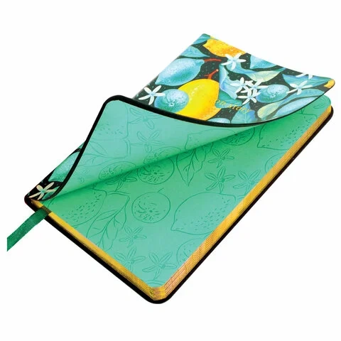 Блокнот МАЛЫЙ ФОРМАТ (100х150 мм) А6, BRAUBERG VISTA 'Lemon Story', под кожу, гибкий, срез фольга, 8