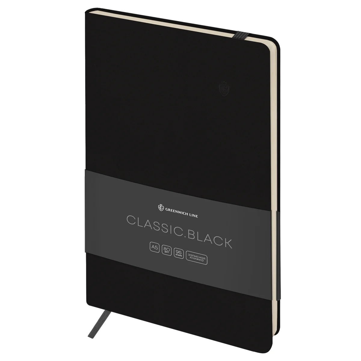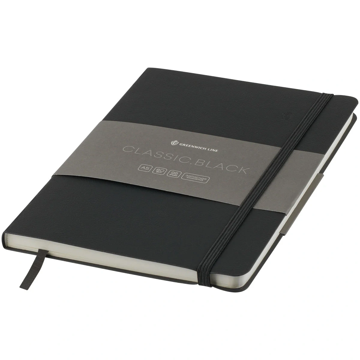 Записная книжка А5 96л. ЛАЙТ, кожзам, Greenwich Line 'Classic. Black', с резинкой, блок без линовки