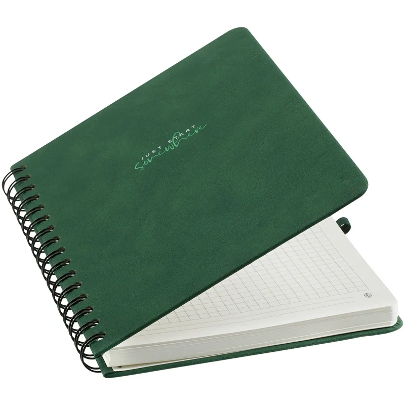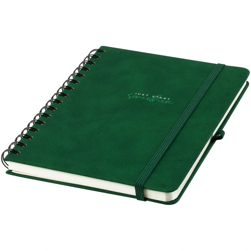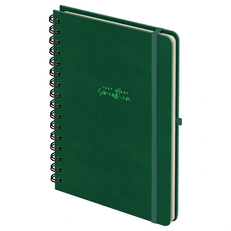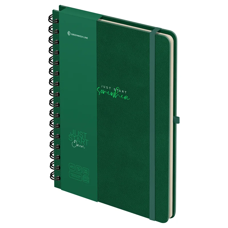 Записная книжка А5 96л., кожзам, на гребне, Greenwich Line 'Just start. Green', твердая обложка, тис