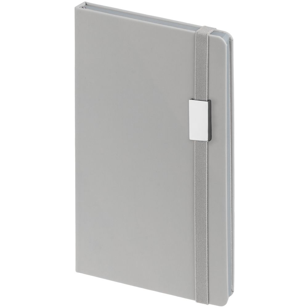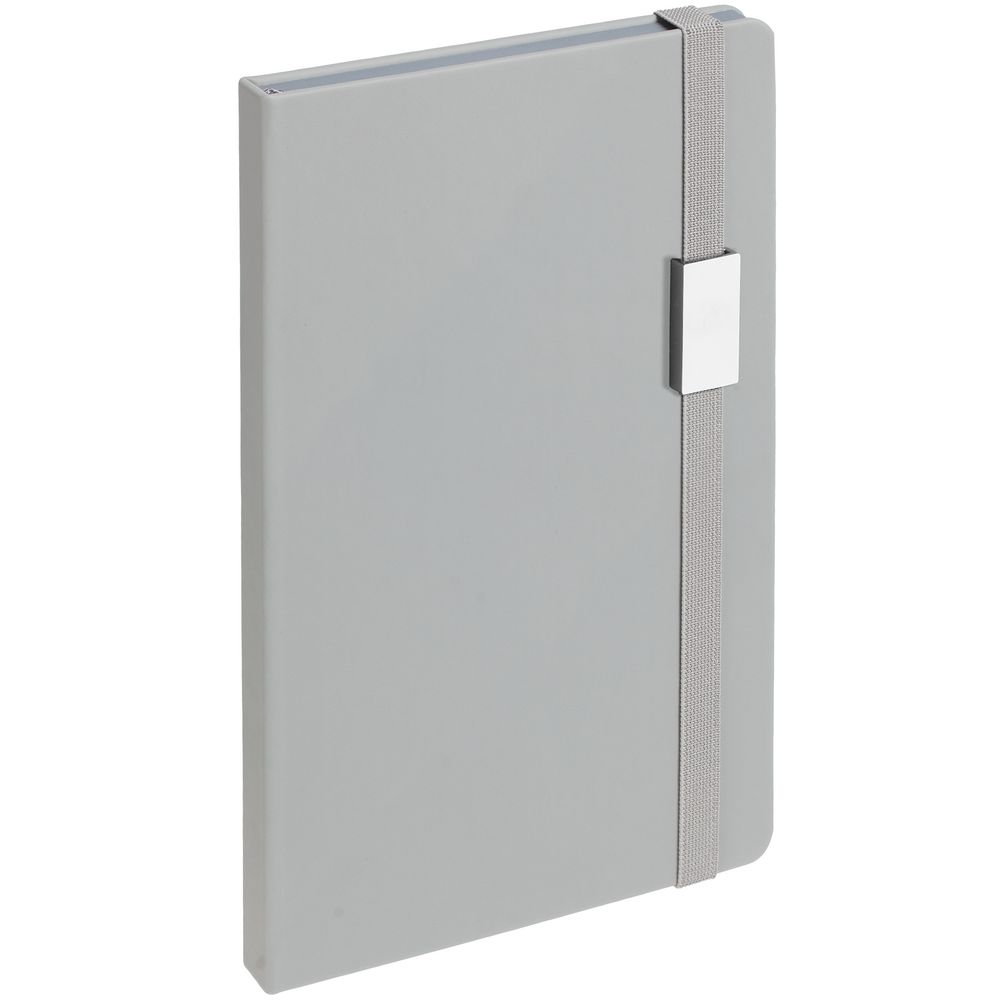 Блокнот в твердой обложке, выполнен из материала Soft Touch, серый СС, дополнен резинкой и ляссе в цвет обложки.Блок в линейку 297:Кол-во страниц — 192;Бумага — тонированная, плотность 70 г/м;Обрез — серый;Форзац и нахзац — тонированные.Шильда на резинку поставляется отдельно. Цвет: серый. Размер изделия: 13х21 см. Материал: искусственная кожа; металл. Возможные виды нанесения: УФ-печать; Тиснение; Лазерная гравировка; Шелкография с трансфером; Шелкография (1 цвет);
