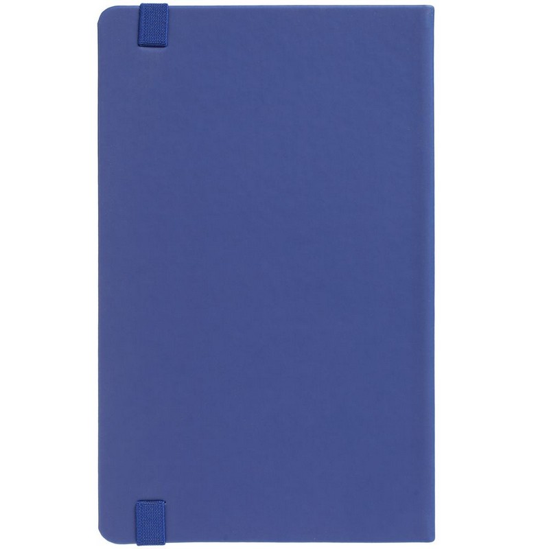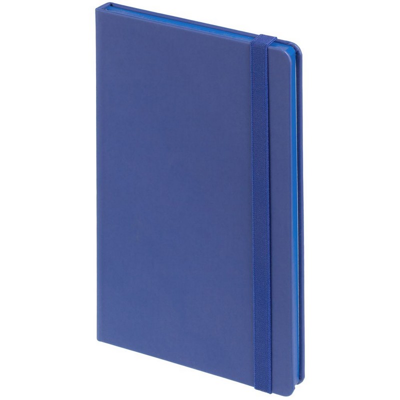 Блокнот в твердой обложке, выполнен из материала Soft Touch Ultra, синий НН, дополнен резинкой и ляссе в цвет обложки. Блок в линейку 297:Кол-во страниц — 192; Бумага — тонированная, плотность 70 г/м; Обрез — синий; Форзац и нахзац — тонированные. Цвет - синий. Размер: 13х21 см. Материал: искусственная кожа. Возможные виды нанесения: УФ-печать; Тиснение; Лазерная гравировка; Шелкография с трансфером; Шелкография (1 цвет)
