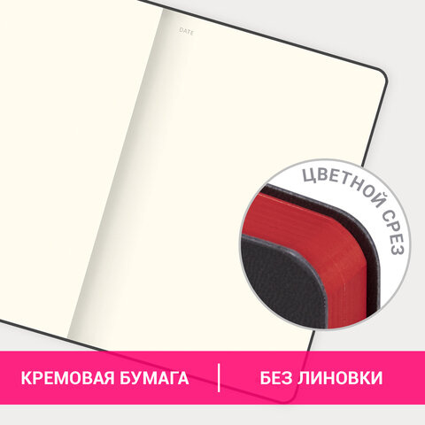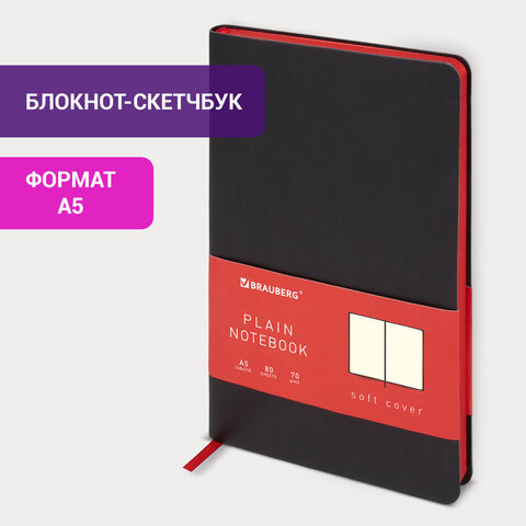 Блокнот-скетчбук А5 (148x218 мм), BRAUBERG 'Metropolis Mix', под кожу, 80 л., без линовки, черный, 1