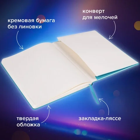 Твердая обложка стилизована под 'классическую кожу'. Имеет закругленные уголки, подходит для горячего тиснения и имеет резинку-фиксатор, благодаря чему не раскроется в сумке или портфеле и листы не помнутся. На внутренней стороне задней обложки есть декоративный конверт для разных мелочей в виде визиток, напоминалок или других милых и полезных мелочей. 96 листов позволят зафиксировать большой объем информации. Блок без линовки дает возможность аккуратно заполнить цифровые значения, вести записи, а также нанести чертежные и художественные зарисовки. Внутренний блок выполнен из офсета цвета слоновой кости плотностью 80 г/м2 и крепится к обложке с помощью книжного переплета. Дополнением является закладка-ляссе, с помощью которой при необходимости можно быстро открыть нужную страницу. Формат блокнота В5 (190х250 мм) позволит владельцу поместить его в кейс или сумку.