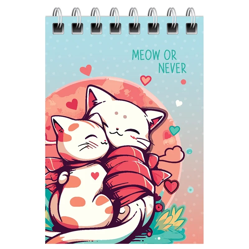 Записная книжка 170*170мм 40л. на скрепке MESHU 'Meow', soft-touch ламинация, тиснение фольгой, блок
