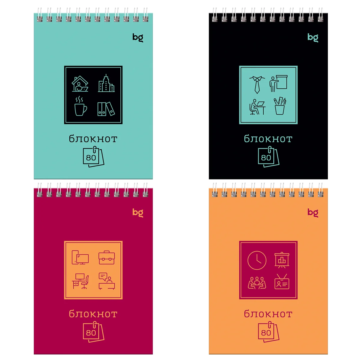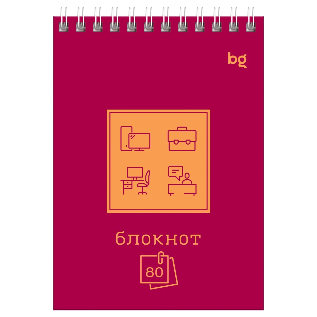 Блокнот Bg Моноколор с удобством, А6, 80 листов, в клетку, на спирали