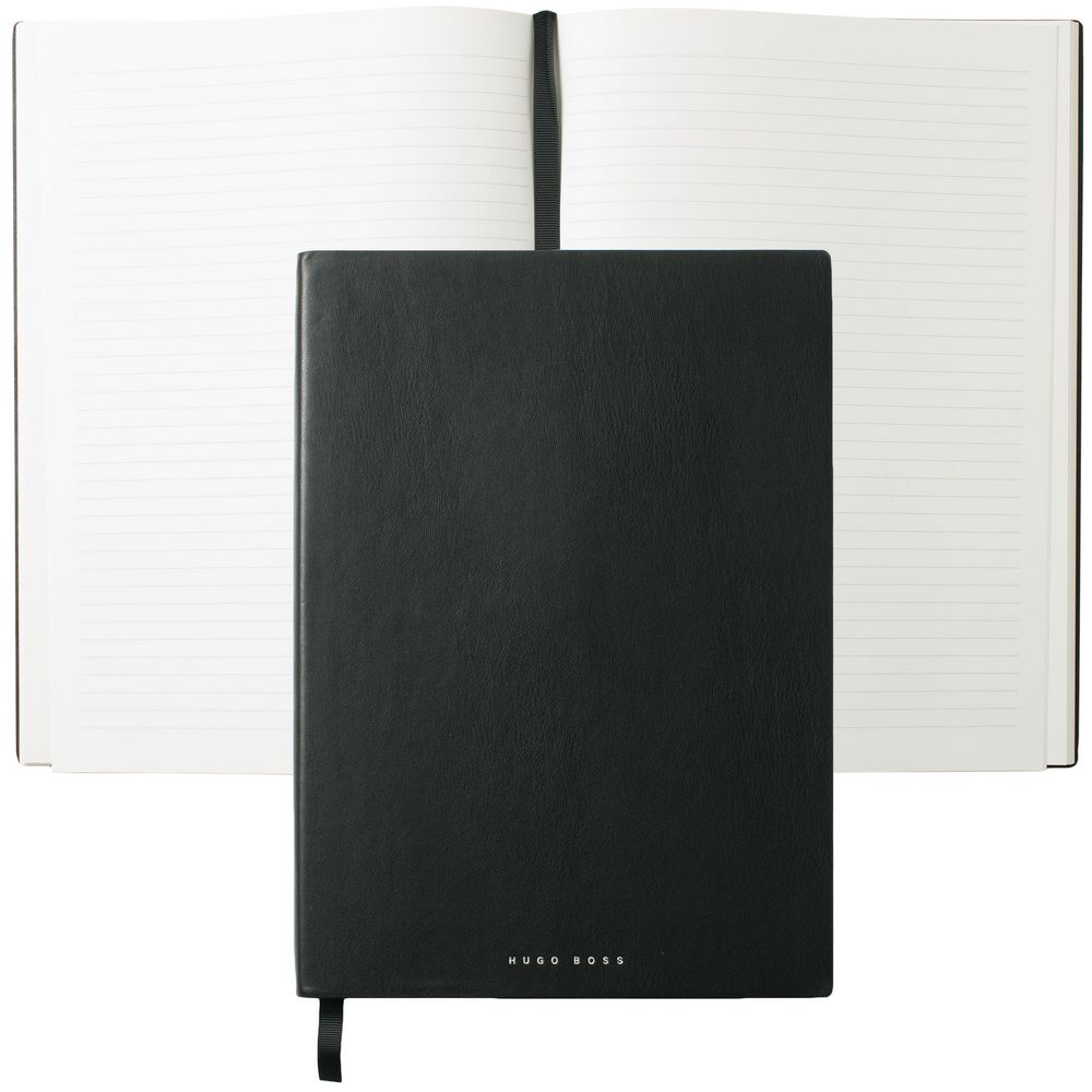 Блокнот формата А4, 96 листов в линейку.Ляссе в тон обложке. Цвет: черный. Размер изделия: 21,5х30 см. Материал: искусственная кожа.