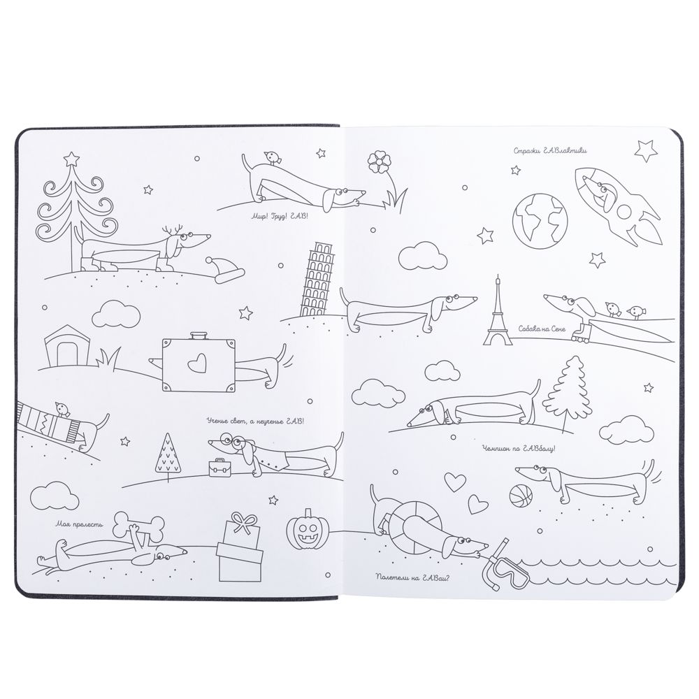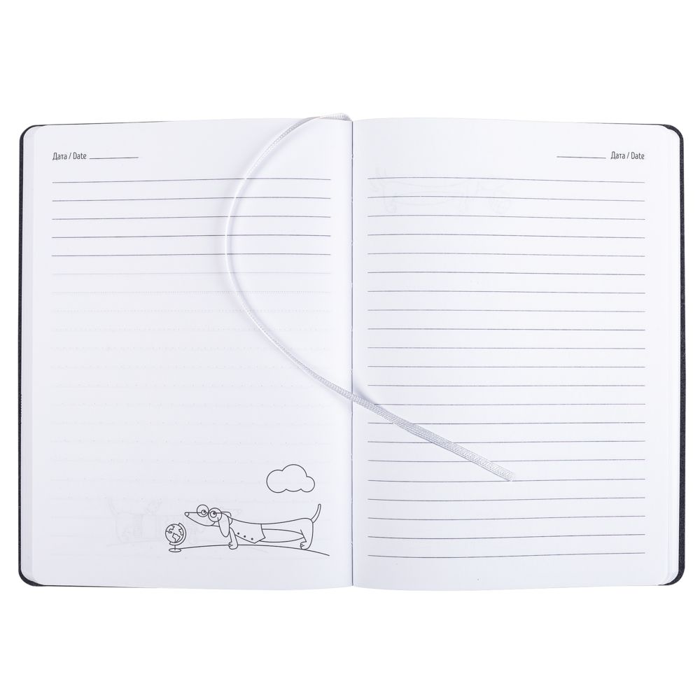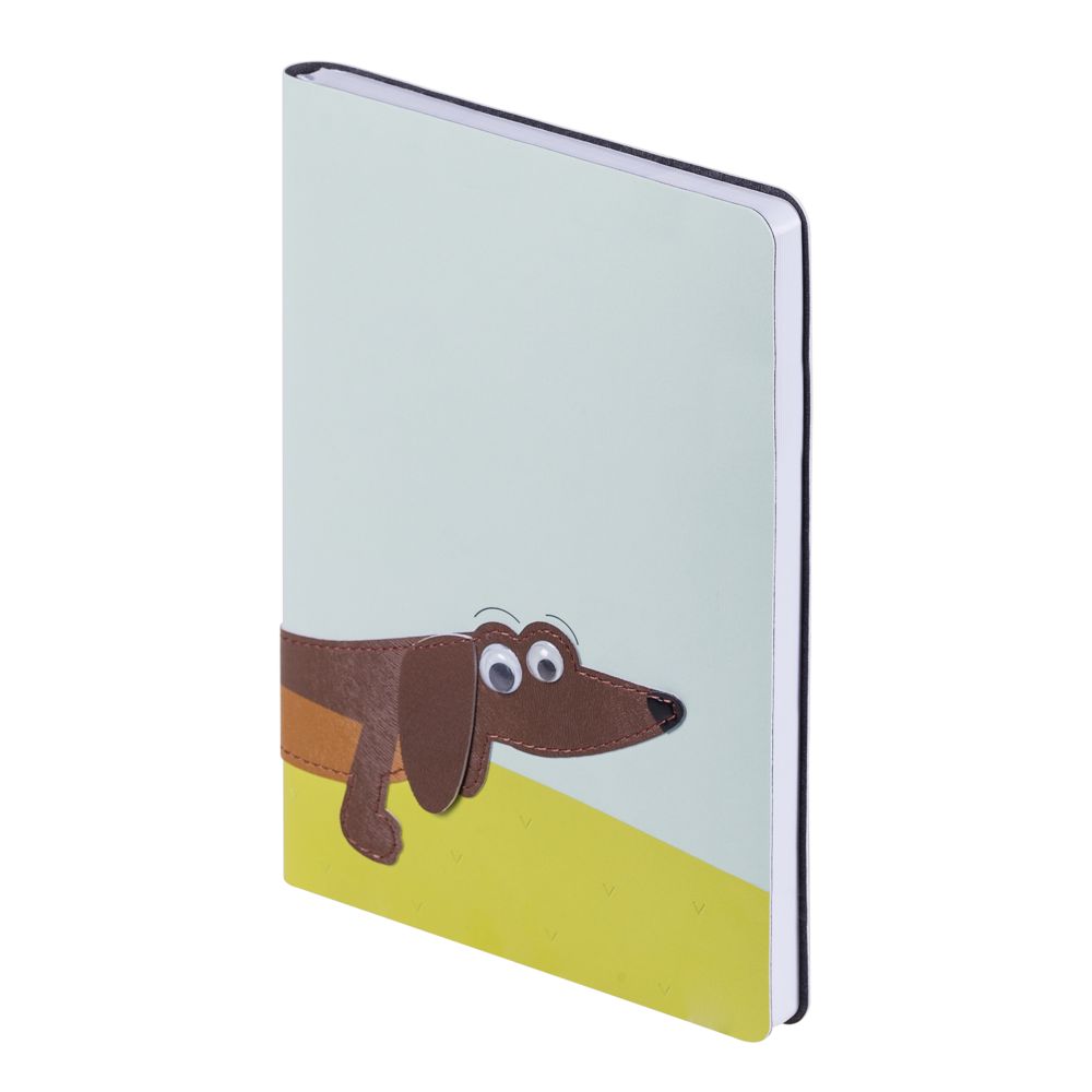Гибкая обложка выполнена из материала Winner, аппликация таксы — из материала Pony.Индивидуальный внутренний блок в линейку, 256 стр., белая бумага, форзац и нахзац с печатью.Блокнот упакован в индивидуальную коробку. Размер изделия: 15,5х21 см. Материал: искусственная кожа. Возможные виды нанесения: Тиснение;