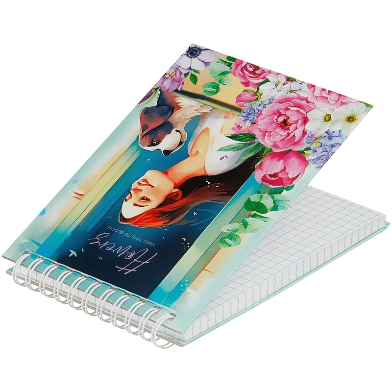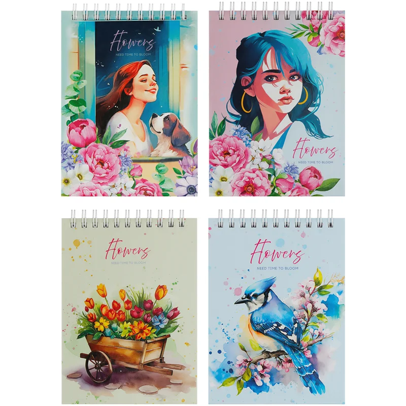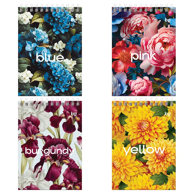 Блокнот Bg Цветочный стиль, А6, 80 листов, в клетку, на спирали