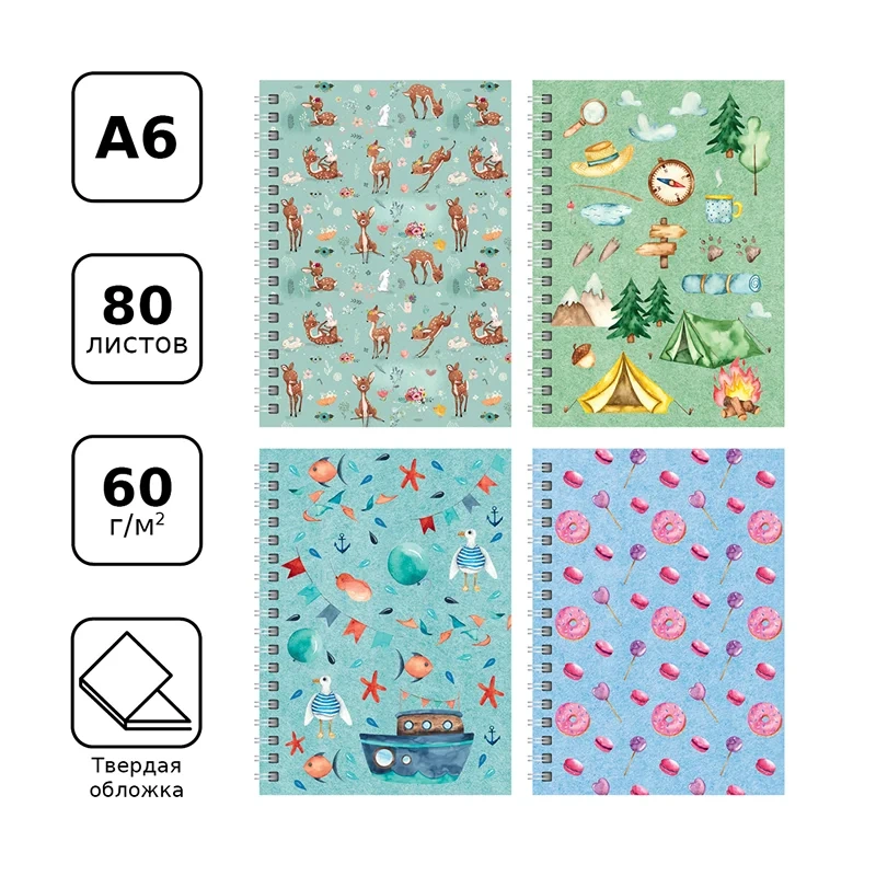 Блокнот Attache Forma, А4, 80 листов, в клетку, на спирали