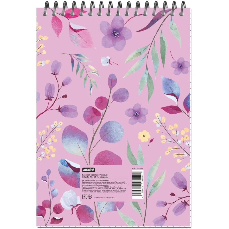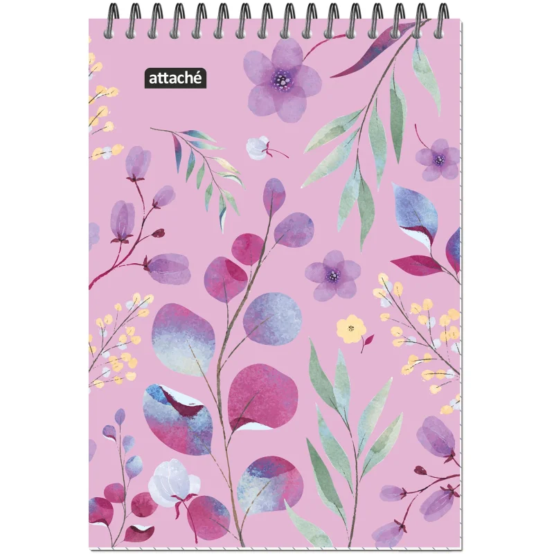 Блокнот Attache Цветы розовый, А5, 60 листов, в клетку, на спирали