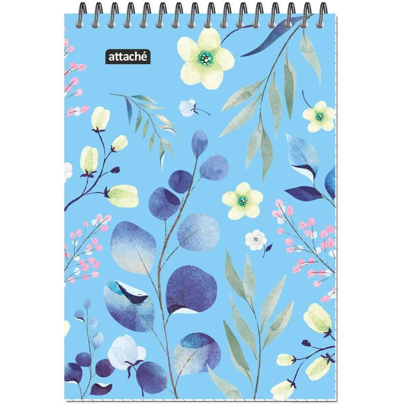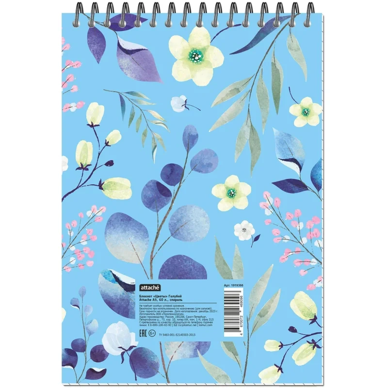 Блокнот Attache Цветы голубой, А5, 60 листов, в клетку, на спирали