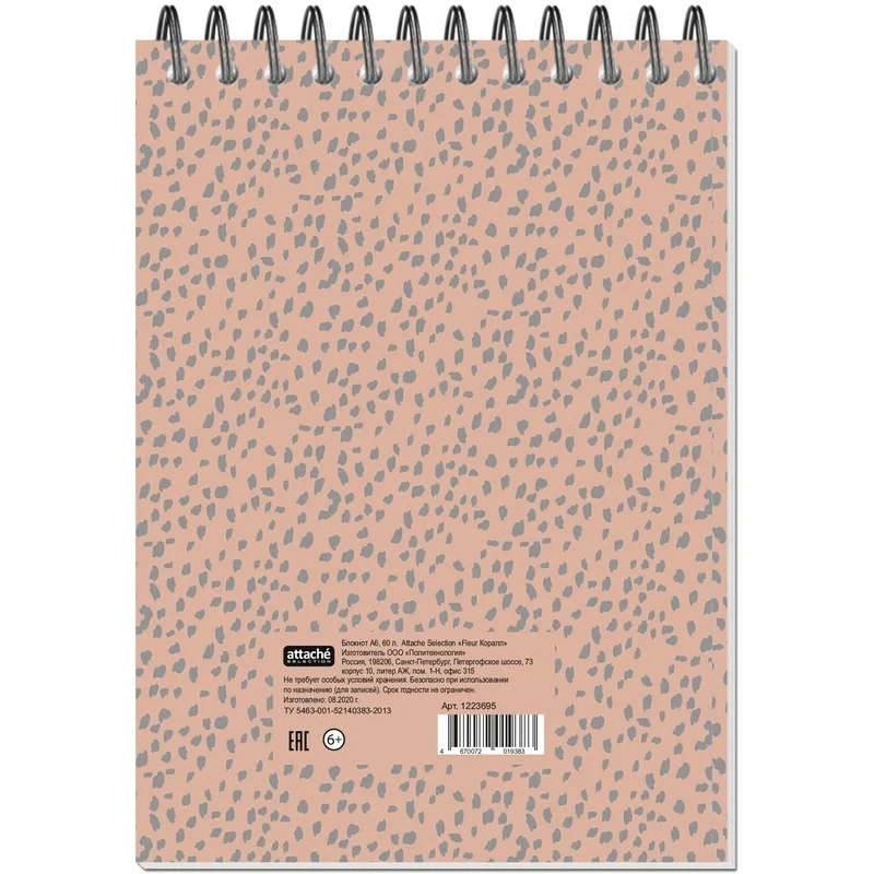 Блокнот Attache Fleur Коралл, А6, 60 листов, в точку, на спирали, картон