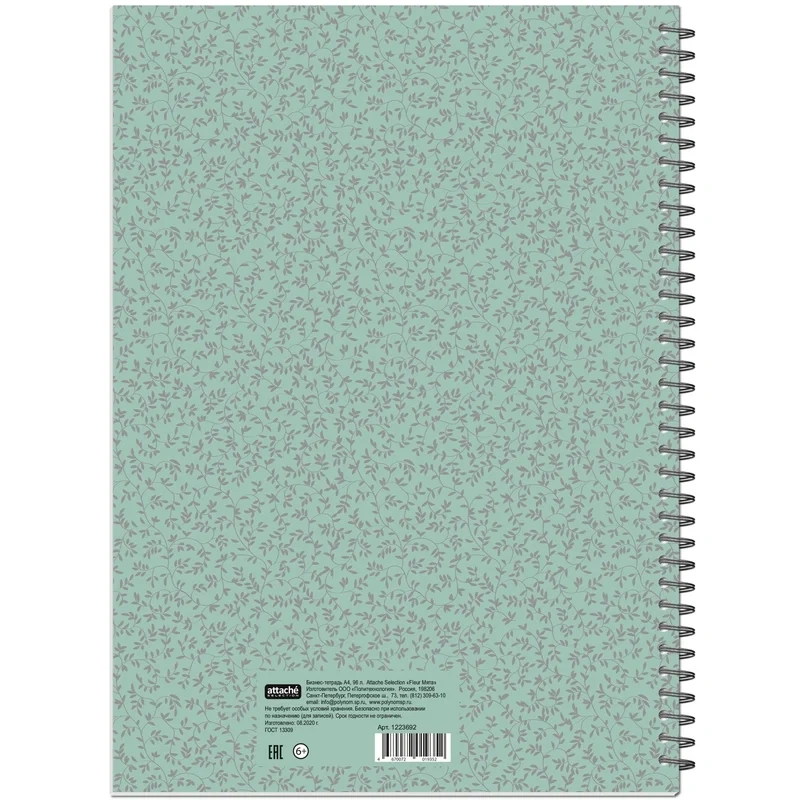 Бизнес тетрадь Attache Fleur Мята, А4, 96 листов, в точку, на спирали, картон