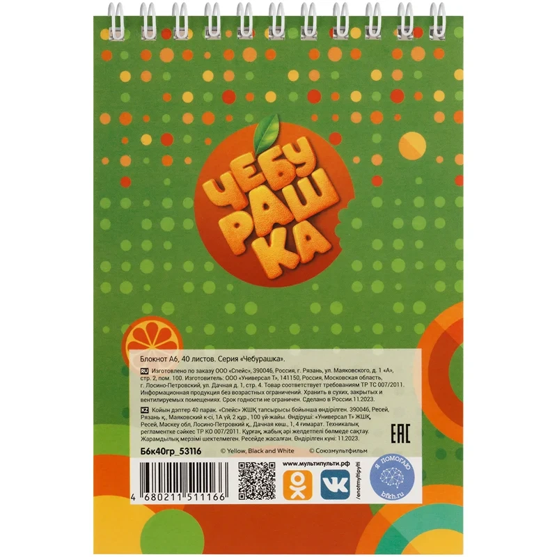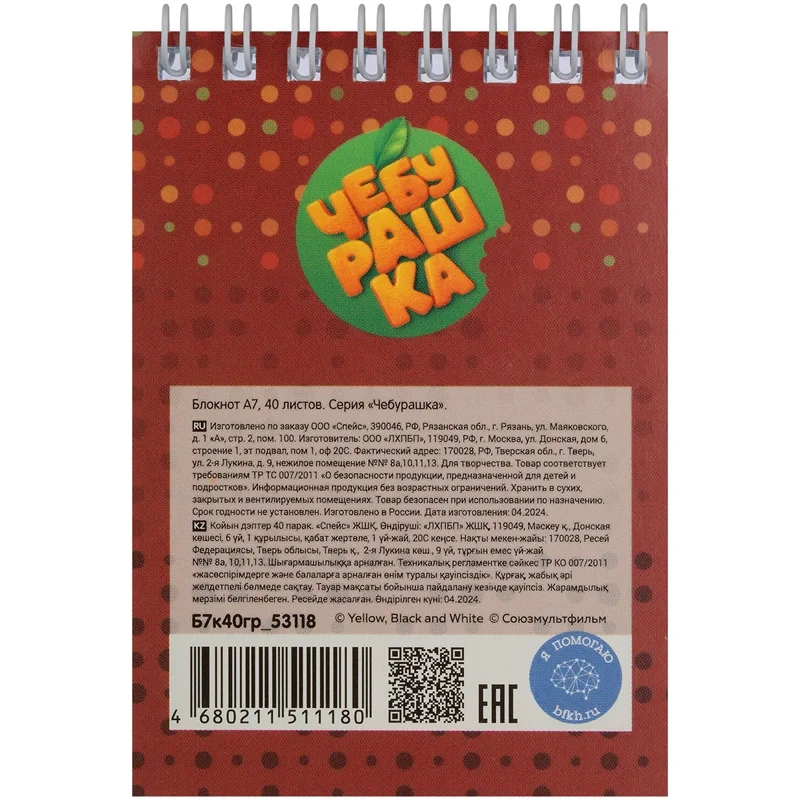 Блокнот Мульти-Пульти Чебурашка, А6, 40 листов, в клетку, на спирали
