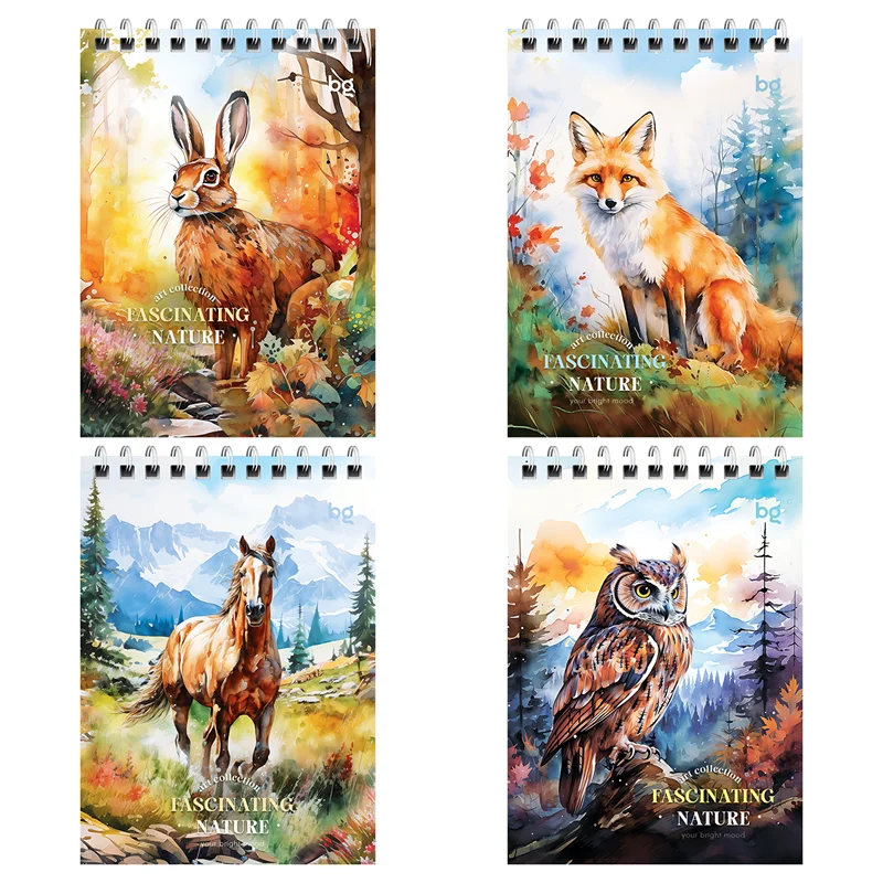 Блокнот Bg Акварель. Дикая природа, А6, 60 листов, в клетку, на спирали