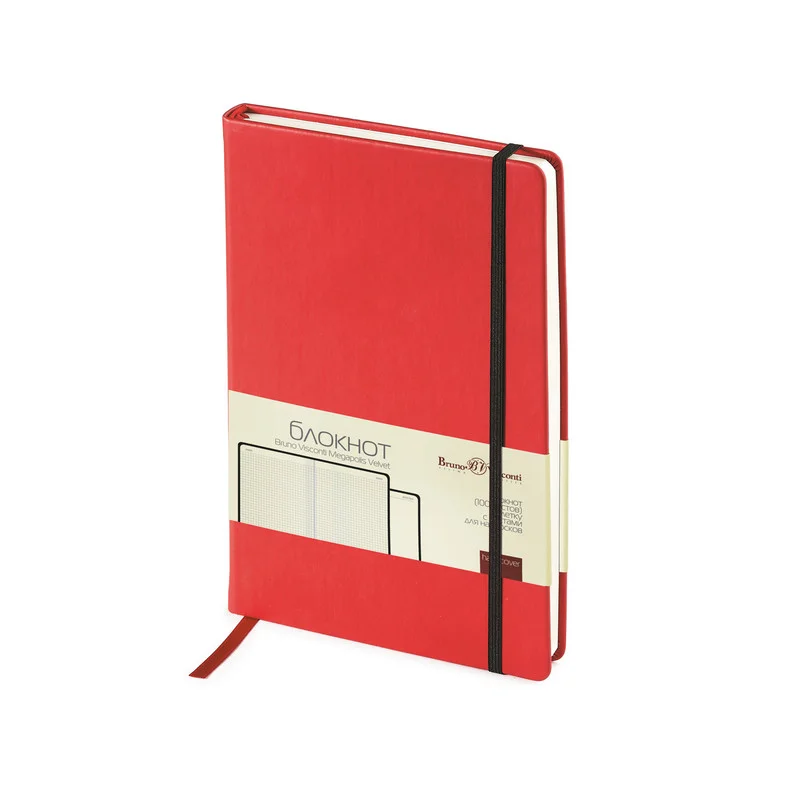 Блокнот Bruno Visconti Velvet красный, А5, 100 листов, на сшивке, иск. кожа
