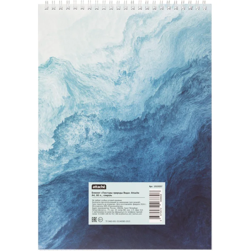 Блокнот Attache Вода, А4, 80 листов, в клетку, на спирали