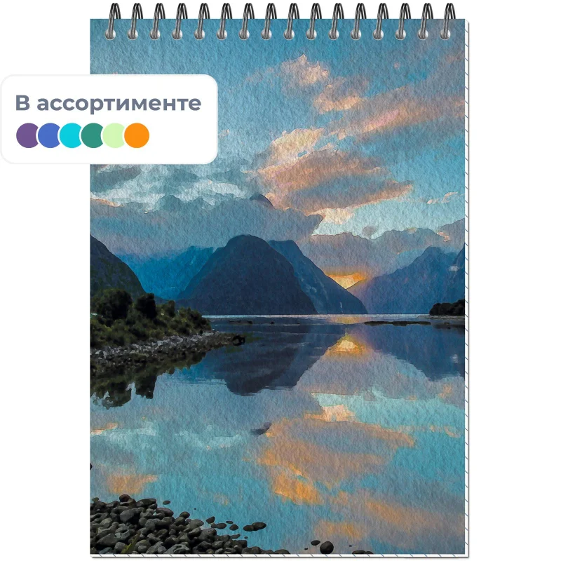Записная книжка А6 120л., на гребне BG 'Прекрасный вид', глянцевая ламинация, твердая обложка