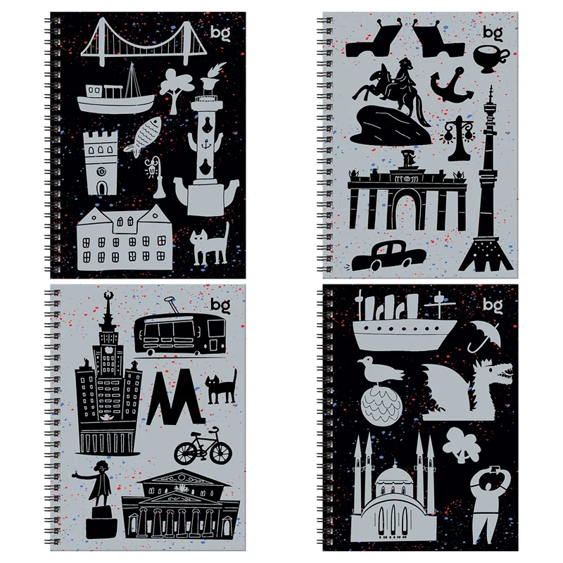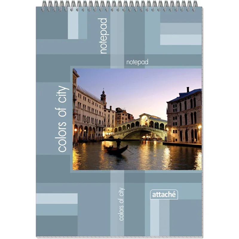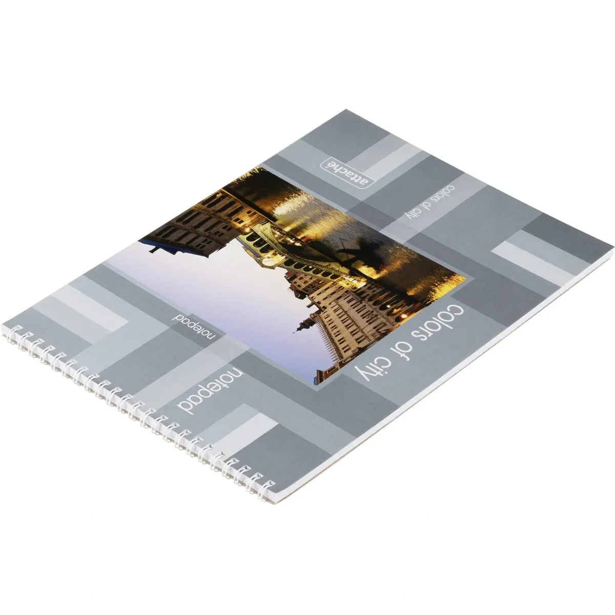 Блокнот Attache Colors of city, А4, 60 листов, в клетку, на спирали, ламинированный картон