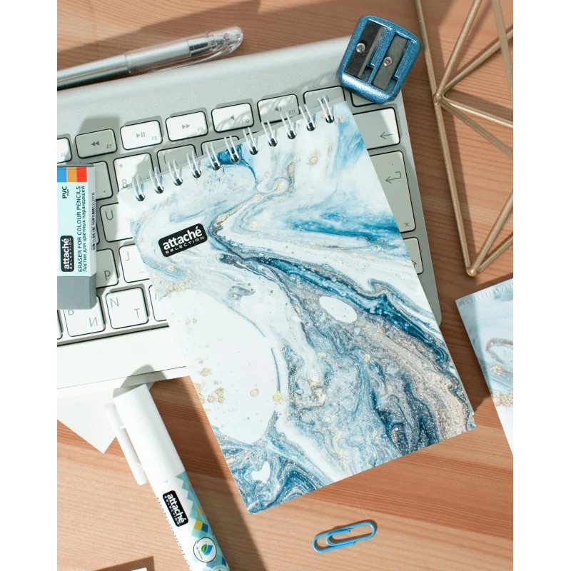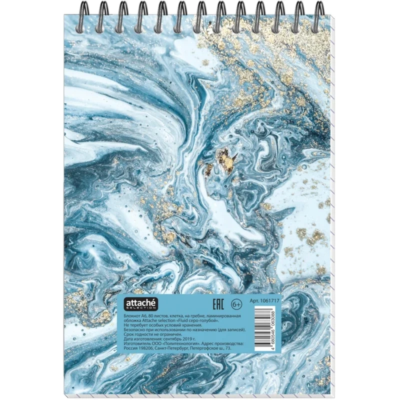 Блокнот Attache Selection Fluid серо-голубой, A6, 80 листов, в клетку, на спирали, картон