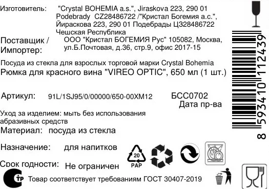 Бокал на ножке для красного вина Vireo Optic 650 мл торговой марки Crystal Bohemia. Изготовлены в Чешской Республике из экологически чистого стекла с добавлением оксида титана, что придает изделиям прочность и устойчивость к истиранию, большую долговечность, подходит для регулярного использования в посудомоечных машинах. Данная технология была специально создана и ориентирована на потребителей для профессионального использования.