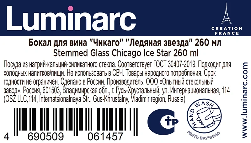 Бокал для вина Luminarc Ледяная звезда Чикаго, 260мл
