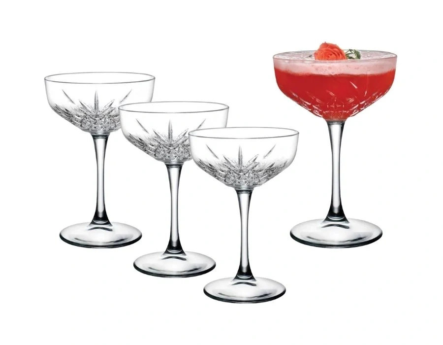 Бокал-креманка для шампанского Pasabahce Timeless, 255 мл — изысканное дополнение к праздничному или обеденному столу. В комплект входят четыре бокала, которые отличаются повышенной прочностью и устойчивостью к повреждениям. На стенках бокала не образуются потертости, царапины или сколы. При бережном уходе он остается блестящим и прозрачным. Изделие выполнено из натрий-кальций-силикатного стекла, которое характеризуется прочностью и долговечностью. Оно подходит для шампанского, коктейлей, игристого вина и и холодных напитков. Тонкое стекло сохраняет свежесть и поддерживает оптимальную температуру напитка. Бокал идеально вписывается в классическую атмосферу, подходит для современного стиля интерьера. Он вносит нотку праздника и торжества в любое застолье. Набор подходит для сервировки стола. Его можно также презентовать в качестве подарка или комплимента благодаря изящному оформлению упаковки. Модель подходит для мытья в посудомоечной машине и надолго сохраняет свою структуру и прозрачность. Стильный и функциональный предмет сервировки с утонченным дизайном имеет слегка изогнутую форму, которая помогает максимально насладиться ароматом и вкусом шампанского. Бокал-креманка Timeless станет превосходным выбором для торжественных мероприятий, романтических ужинов и праздничных вечеров.