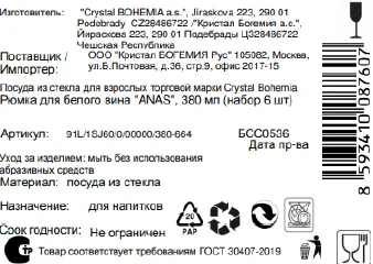 Набор бокалов для вина Crystal Bohemia Anas, 380мл x 6шт