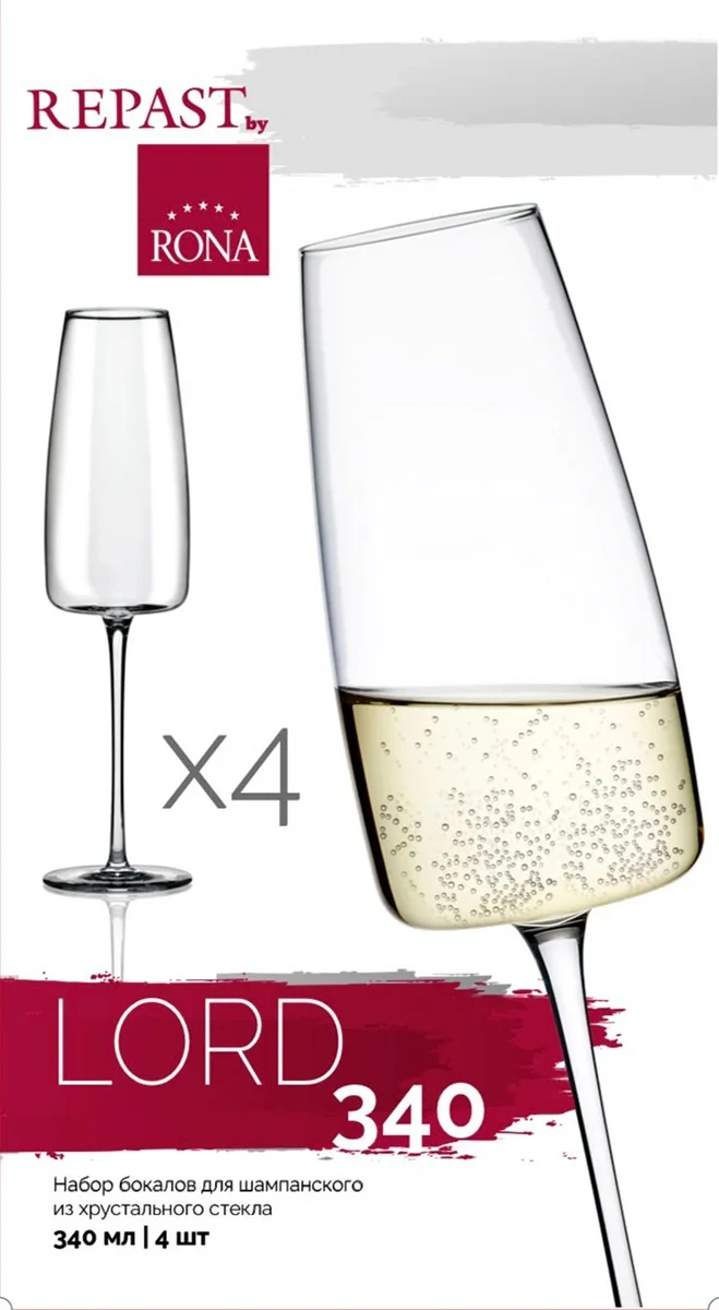 Набор бокалов для шампанского Rona Lord, 340мл x 4шт