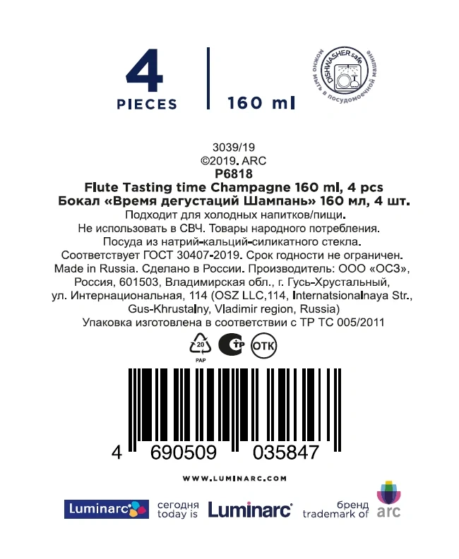 Набор бокалов Luminarc Время дегустаций Шампань, 160мл x 4шт