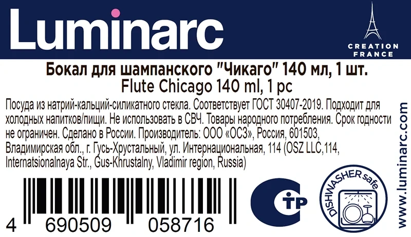 Бокал для шампанского Luminarc Чикаго, 140мл