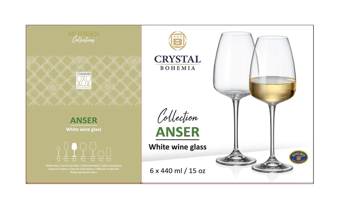Набор бокалов для белого вина Crystal Bohemia Ancer alizee, 440мл х 6шт