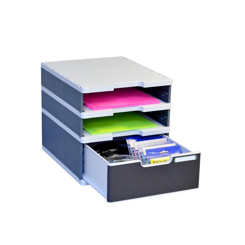 Бокс для бумаг Exacompta серо-черный, А4, 3 ящика
