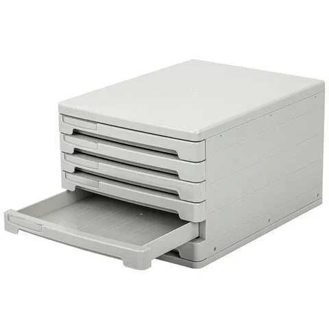 Ibox - бокс для хранения документов формата А4. Выполнен из непрозрачного глянцевого пластика. В различной комбинации черного и белого цвета. 5 выдвижных лотков закрытого типа. Новый запатентованный механизм ячейки для открывания лотка при помощи легкого нажатия на клавишу, за которой расположено индексное окно. Высота лотка 40 мм. Внешние размеры бокса 295*355*247 мм.