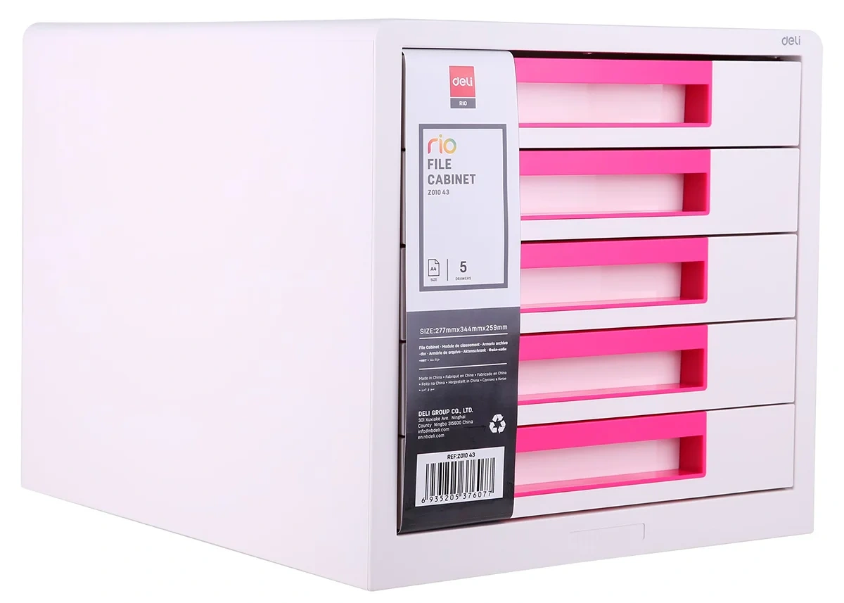 Бокс для документов Deli EZ01043 Rio 5 выдвижных ящиков 277х344х259мм белый/малиновый пластик