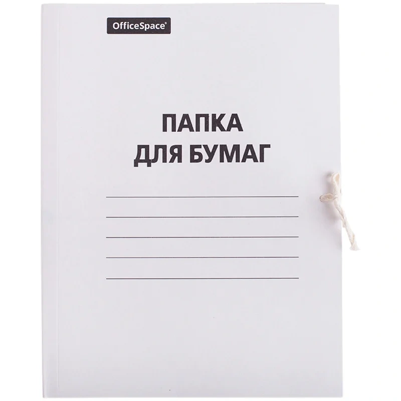 Картонная папка на завязках Officespace белая, А4, до 200 листов, 260г/м2, немелованная