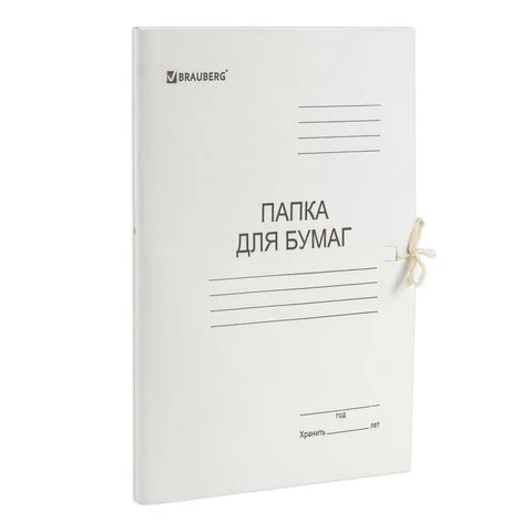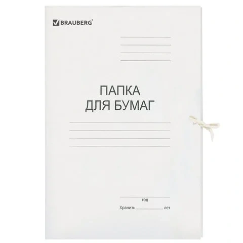 Картонная папка на завязках Brauberg белая, А4, до 200 листов, 320г/м2