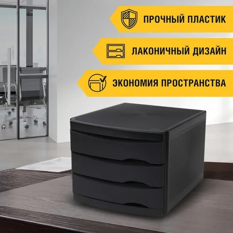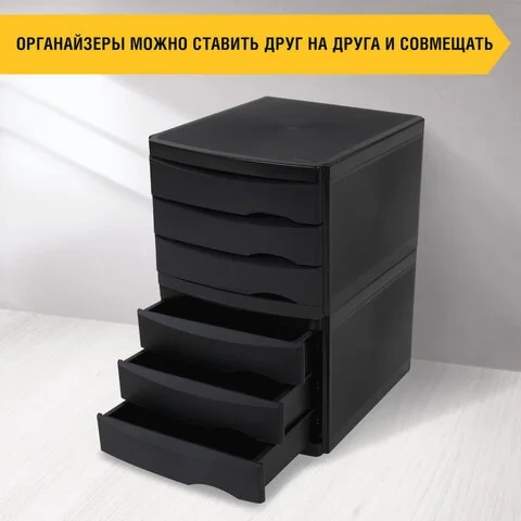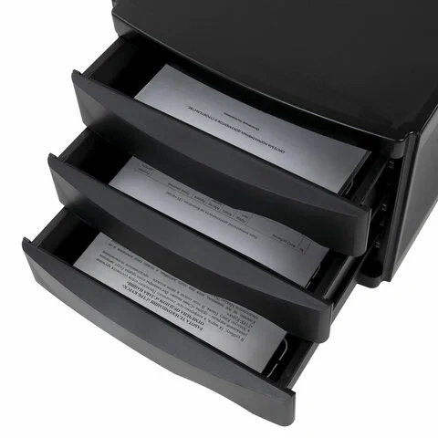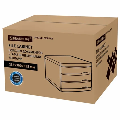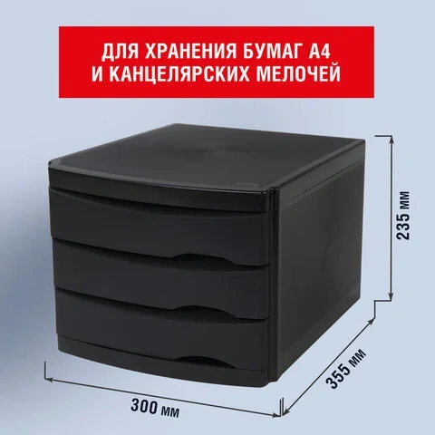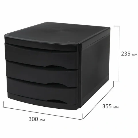 Бокс с 3 выдвижными лотками, корпус чёрный, лотки черные, 235х300х355 мм, BRAUBERG 'Office-Expert',