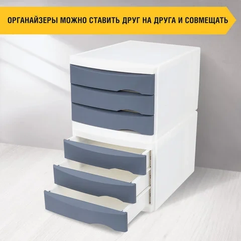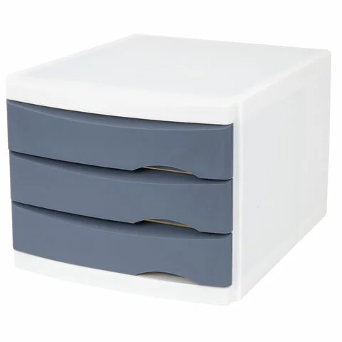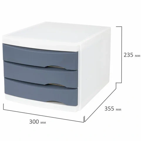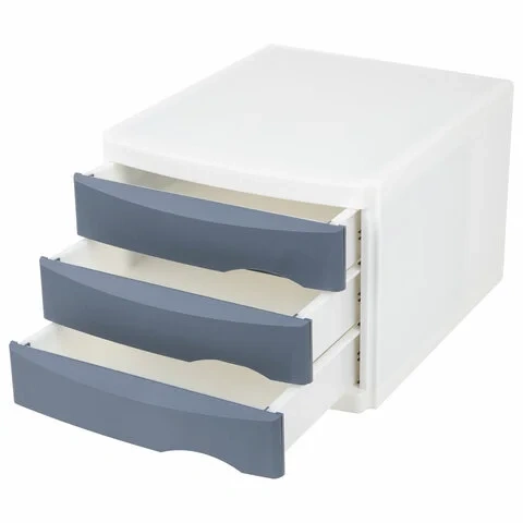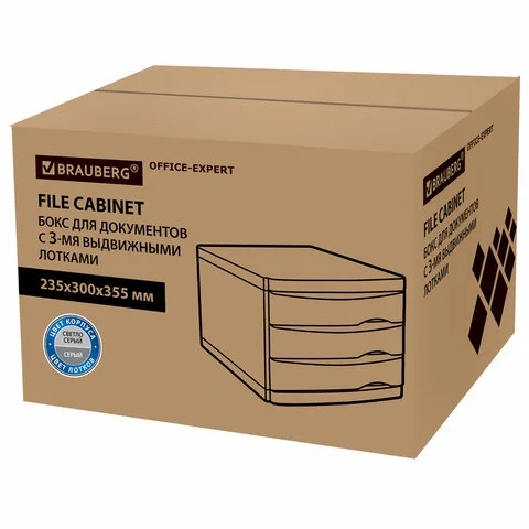 Бокс с 3 выдвижными лотками, корпус светлый, лотки серые, 235х300х355 мм, BRAUBERG 'Office-Expert',