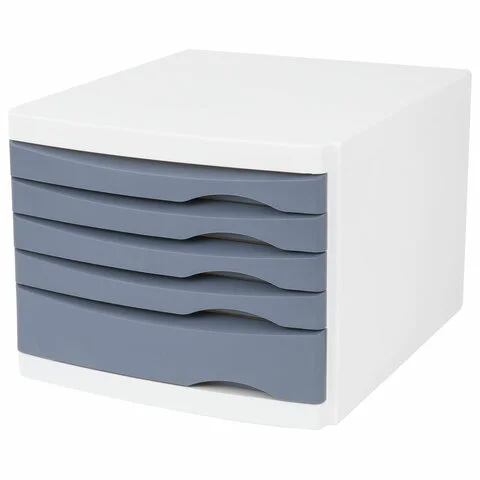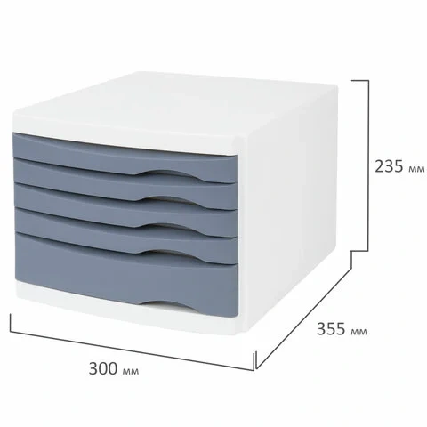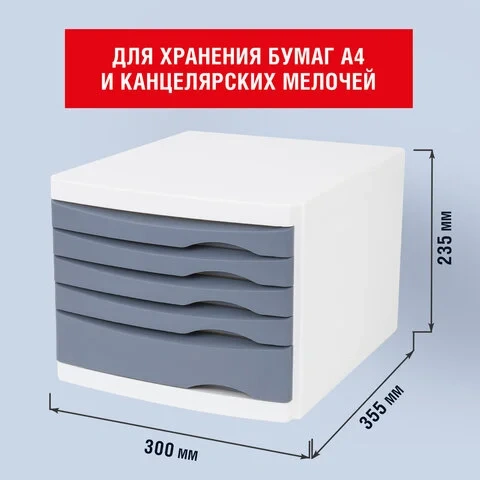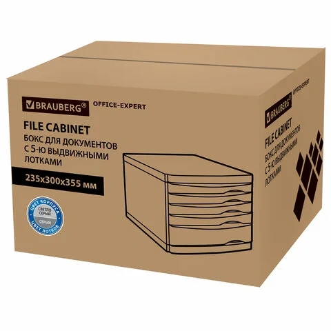 Бокс с 5 выдвижными лотками, корпус светлый, лотки серые, 235х300х355 мм, BRAUBERG 'Office-Expert',